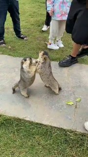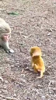 猴妈妈鼓励猴宝宝学走路。